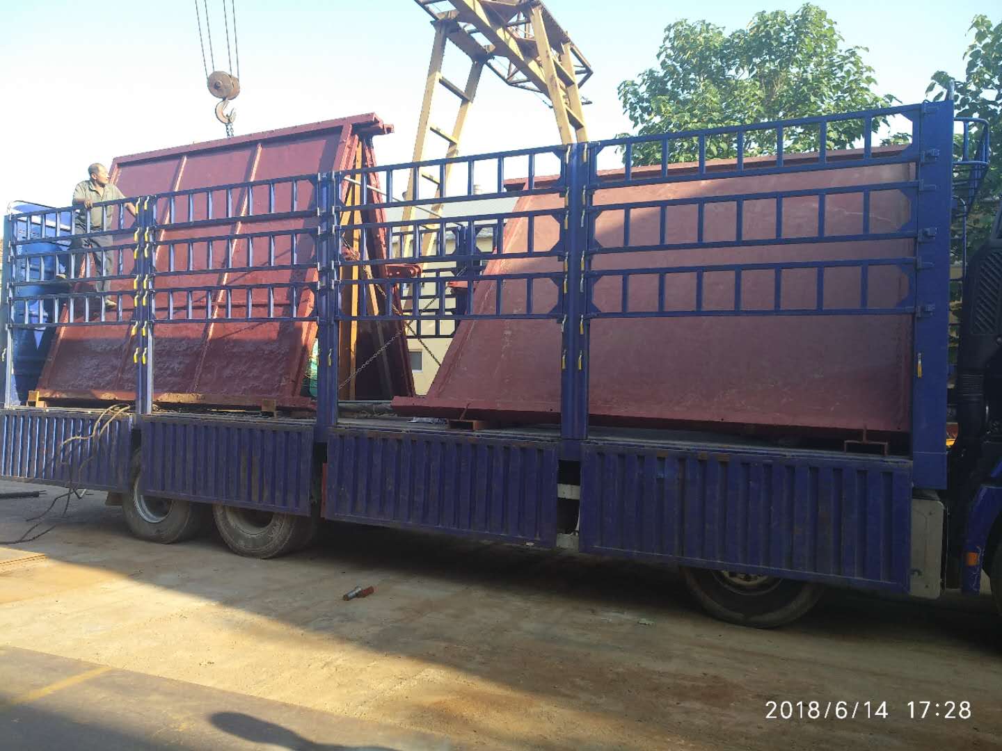 河南柘城3*3.6米平板雙向止水鑄鐵鑲銅閘門和螺桿啟閉機裝車直達發貨